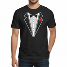 This tuxedo graphic tee delivers the perfect blend of humor and effortless style, making it a go‑to choice for parties, school events, or any moment that calls for a playful twist on formalwear. Printed on a classic black shirt, the design features crisp white tuxedo lines, a sharp bow tie, and a bold red carnation that pops beautifully against the dark background. It gives you all the charm of dressing up without any of the hassle. Comfortable, lightweight, and guaranteed to get a laugh, it’s the ideal statement piece for anyone who wants to keep things classy while staying completely laid‑back.