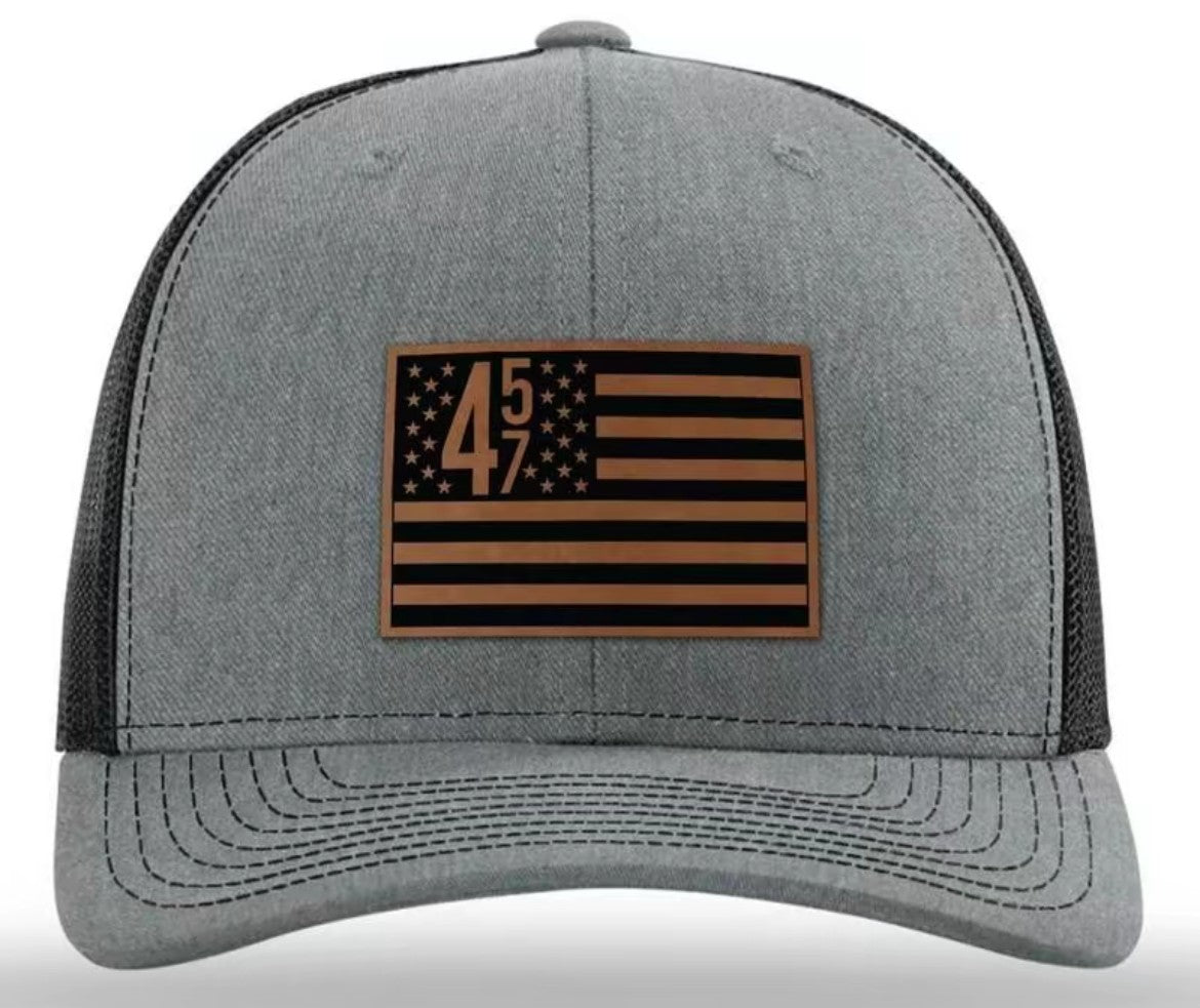 45/47 Snapback USA Flag Trucker Hat with Leather Patch. Printed in the USA